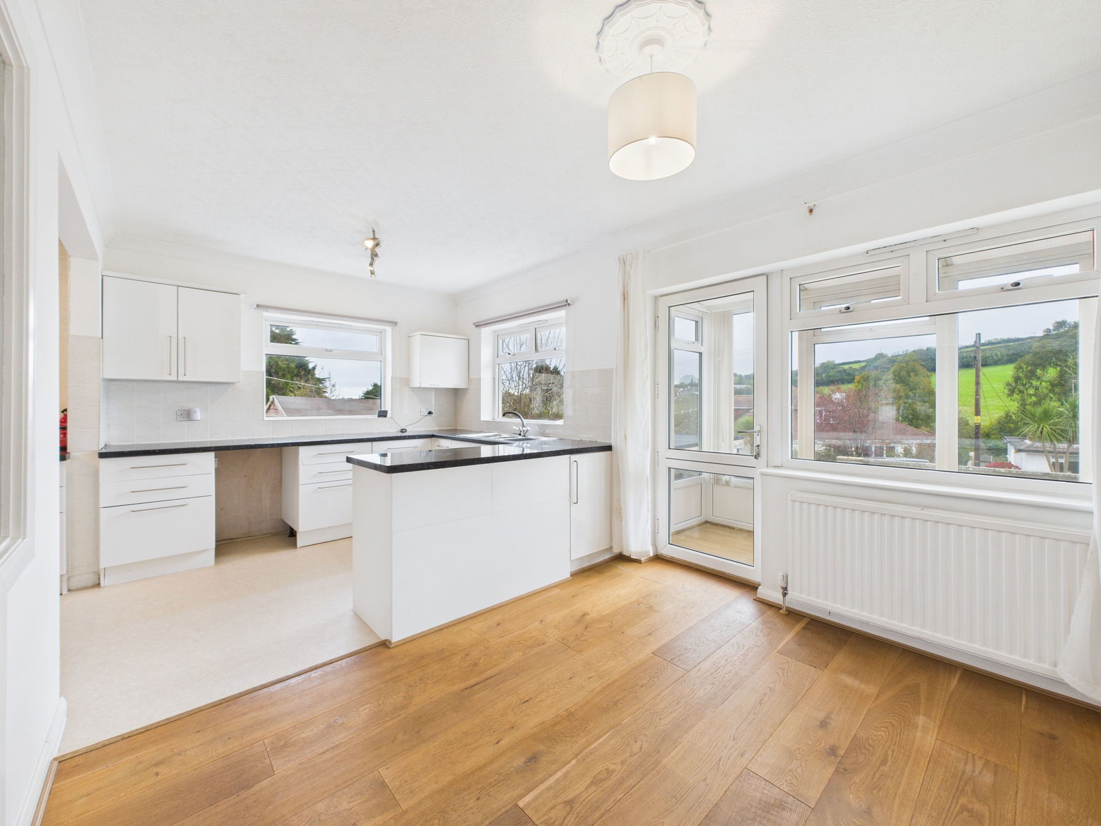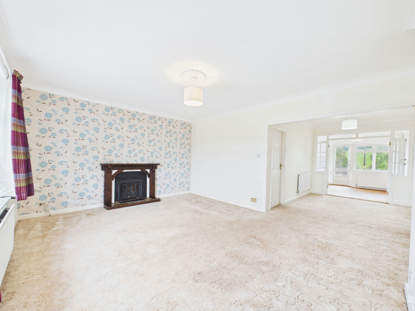 LIVING ROOM A bright and generously proportioned living room that flows seamlessly into the kitchen/dining area. This versatile space offers room for a full suite of furniture, a feature log/coal burning stove, TV and internet points and a large uPVC double glazed window allowing in plenty of natural light.