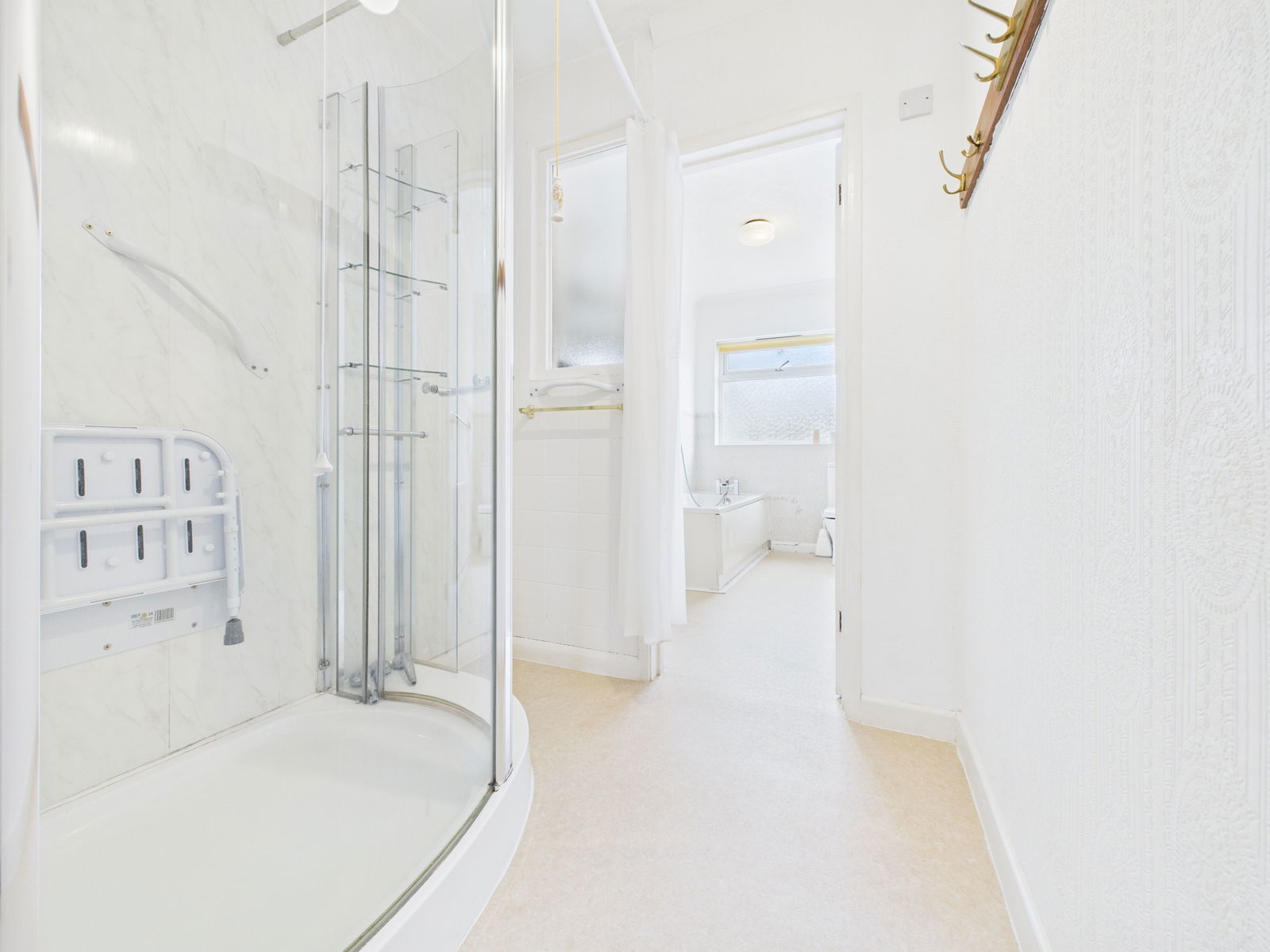 FAMILY BATHROOM A well sized family bathroom featuring a four piece suite comprising a low level WC, pedestal wash basin, panelled bath and a separate corner shower unit. Finished with tiled walls, an obscure uPVC double glazed window and a gas central heating radiator.