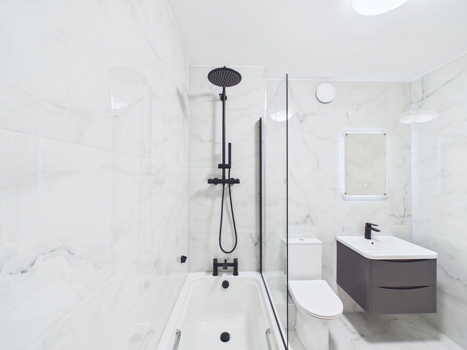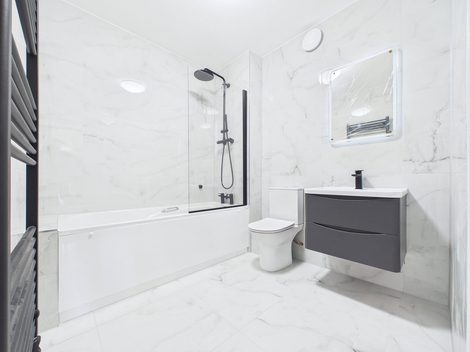 BATHROOM A beautifully appointed three piece suite comprising of bath and overhead shower, wash hand basin with vanity surround, low level WC and wall hung radiator.