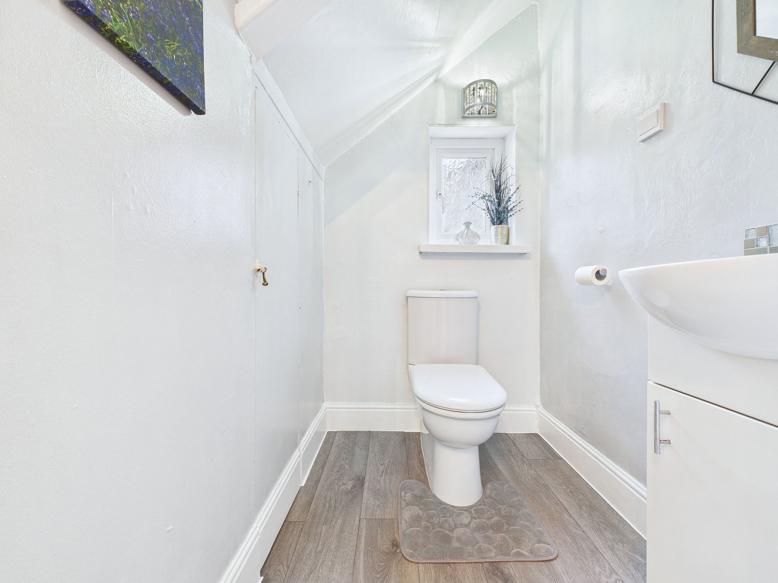 LARGE ENTRANCE HALLWAY A very grand hallway and spacious, two uPVC windows, radiator, door into cloak with low level WC and wash basin with vanity surround and obscure window to side.