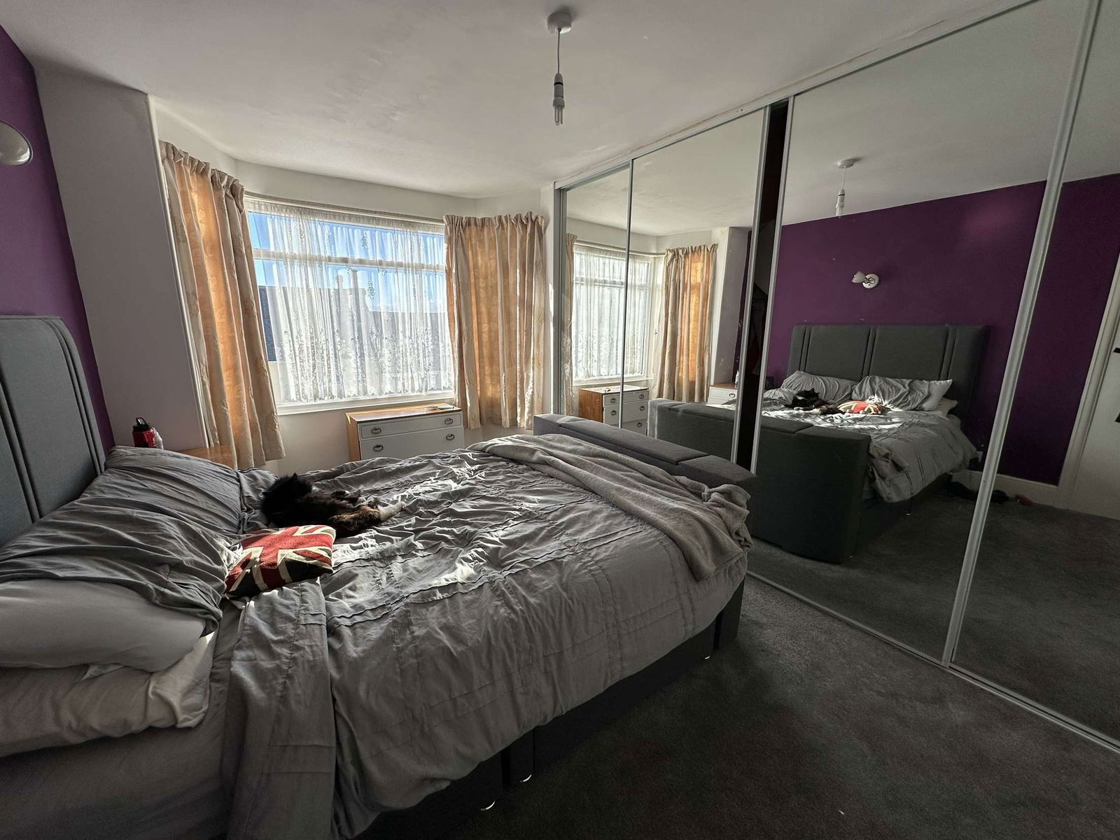 BEDROOM ONE 14' 5" x 9' 1" (4.3m into bay x 2.7m max to front of built in wardrobes) Double glazed bay window to front enjoying an open outlook. Fitted wardrobes along one wall with sliding doors. Radiator.