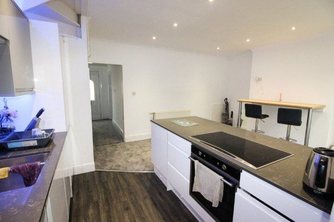 KITCHEN/DINER Fitted with a modern matching range of high gloss fronted wall and base mounted units and drawers with work surface over. Under unit and over unit colour changing LED lighting. 1.5 bowl stainless steel sink unit with mixer tap. Concealed integrated fridge/freezer and dishwasher. Centre peninsular unit with inset electric oven and hob. Wine racks. Double glazed window to rear. Radiator. Archway to:-