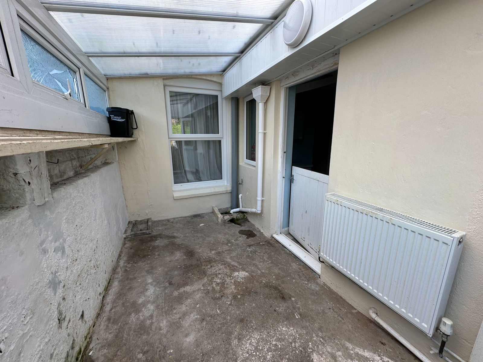 A useful room for storage or utilities having double glazed windows, polycarbonate roof and door to the rear garden. Cold water tap. Radiator.