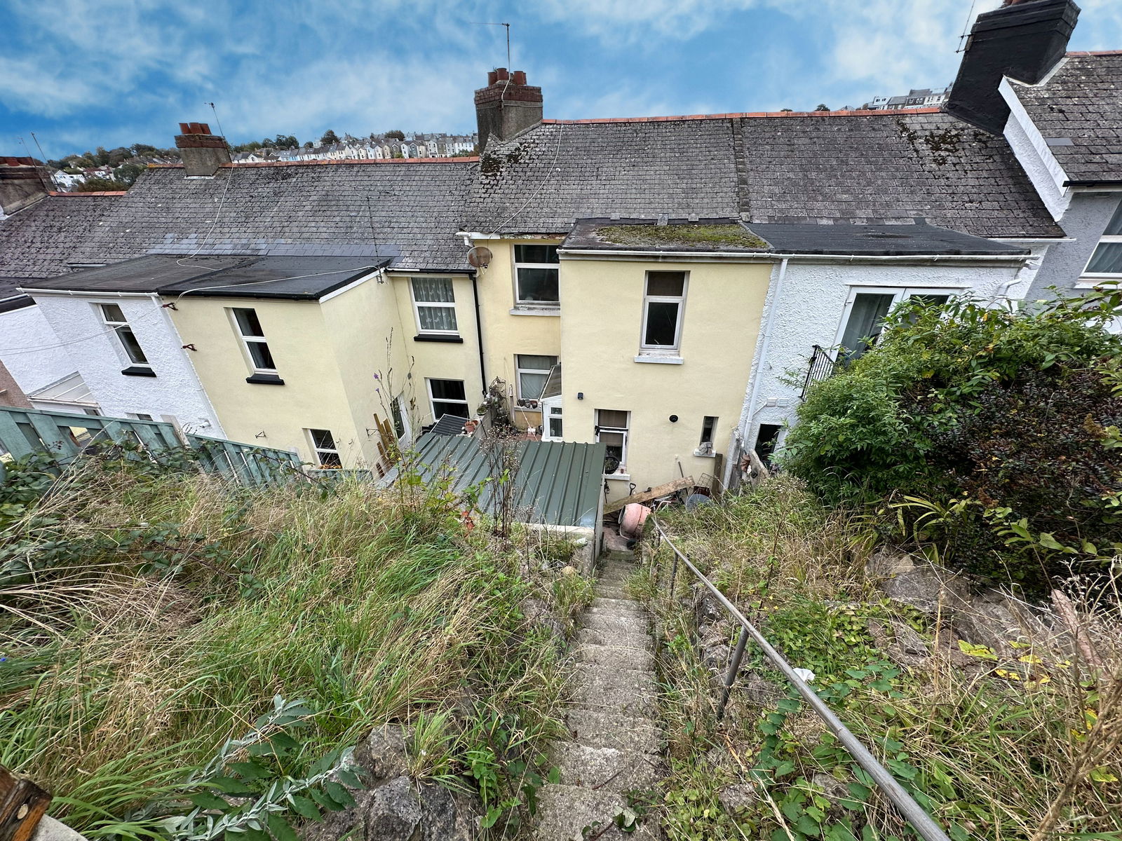 OUTSIDE To the front of the property is a terraced front garden with the terraces laid mostly to paving and concrete. To the rear of the property is a terraced garden with terraces laid mostly to turf. There are steps up the side of the garden leading to the top terrace which benefits from distant views over Torquay and a summer house.