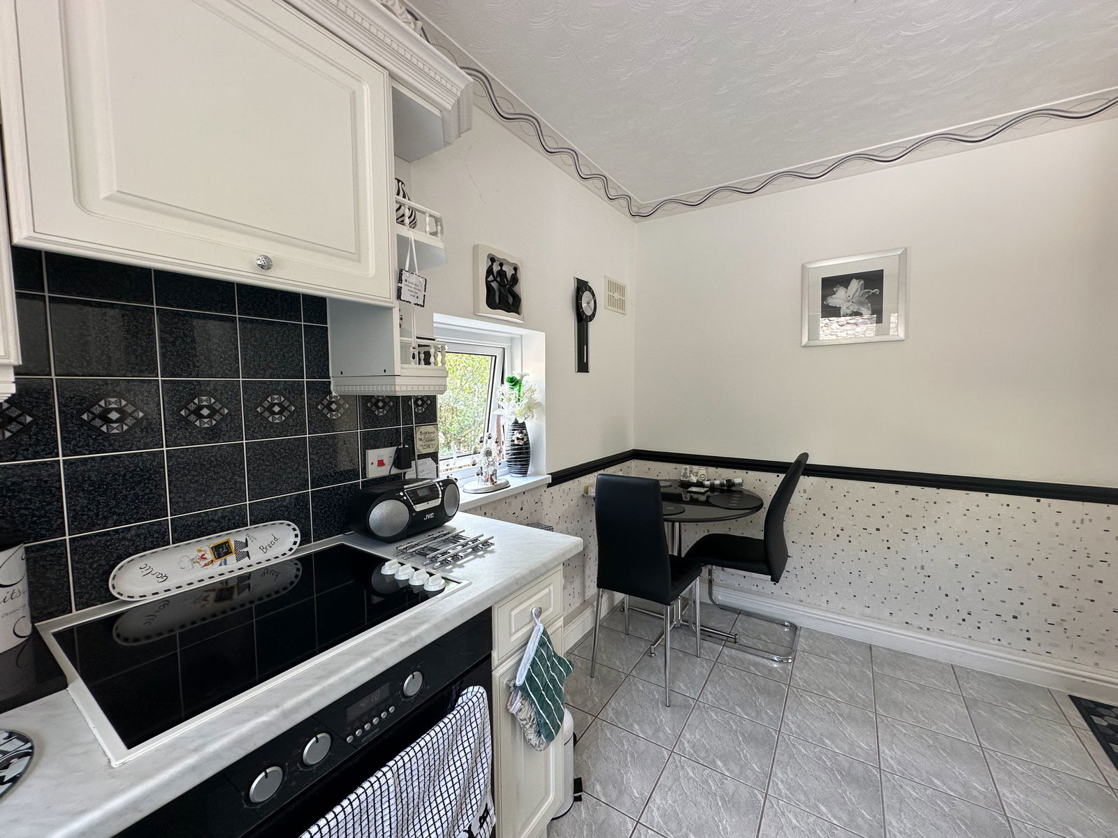 KITCHEN/DINER - 2.59m x 3.73m (8'5" x 12'2") Fitted kitchen with wall and base units fitted work surfaces, integrated fridge/freezer, sink with drainer, oven and four ring hob. Plumbing for washing machine. Wall mounted radiator.