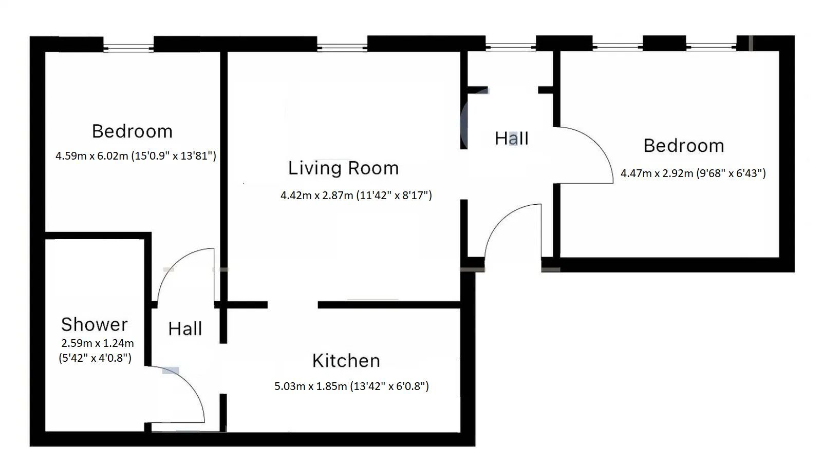 BEDROOM 1 - 4.59m x 6.02m (15'0.9" x 13'81") Carpet flooring. Sash windows x 2 to the front aspect. Electric points, TV point.
