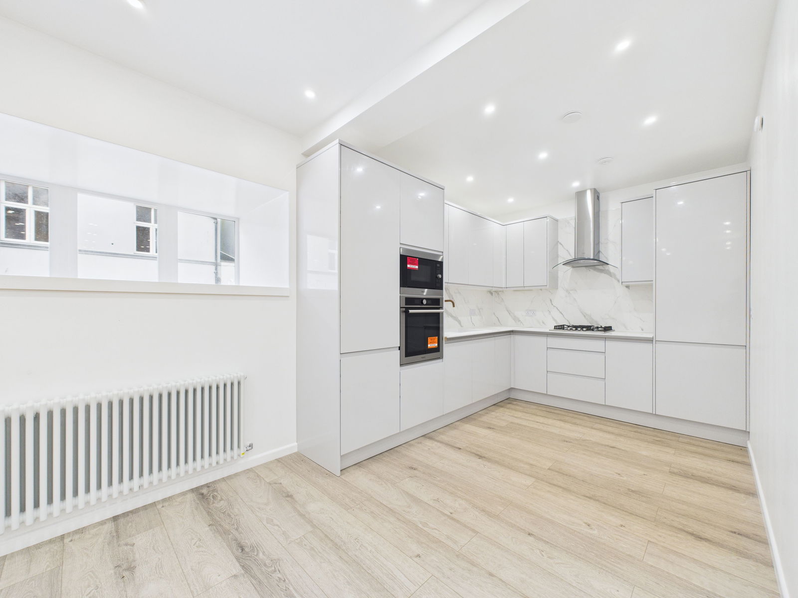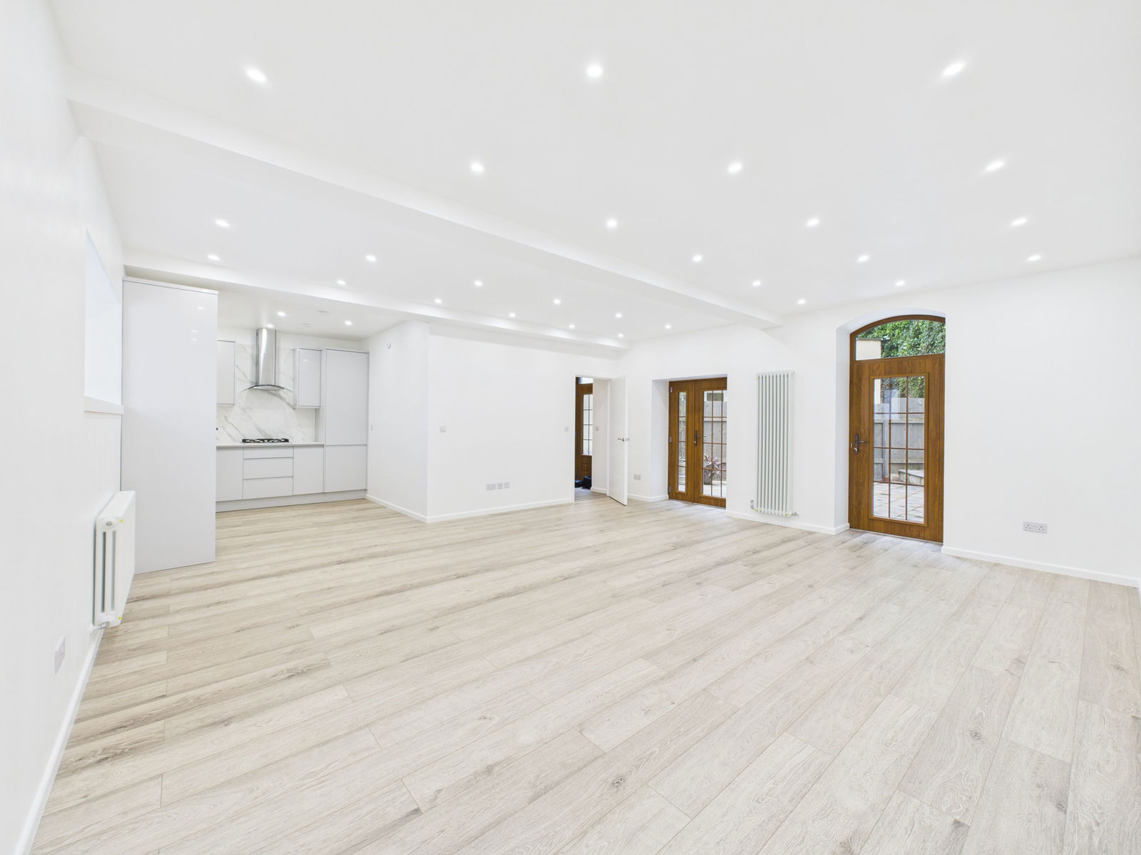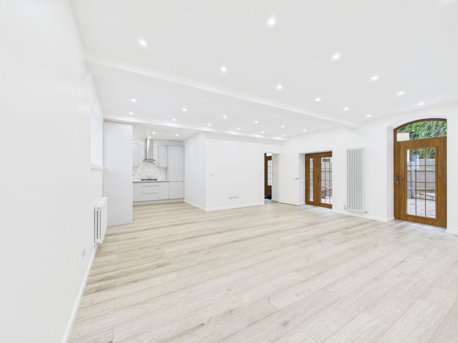 LOUNGE DINER - 6m x 5.6m (19'8" x 18'4") This expansive room offers a bright and airy space which will allow various layouts which can then take advantage of the two large double glazed doors that open out to the private garden. There are ample led spotlights to the ceiling along with numerous double power points and one with usb charging points. Two Victorian style radiator. Wood effect flooring. There is a deep cilled double glazed window which overlooks Park Hill Road. This large lounge/diner is open to:-