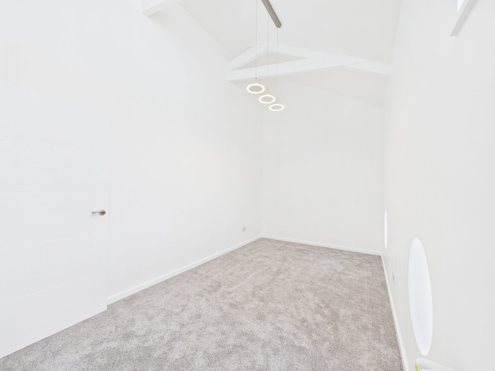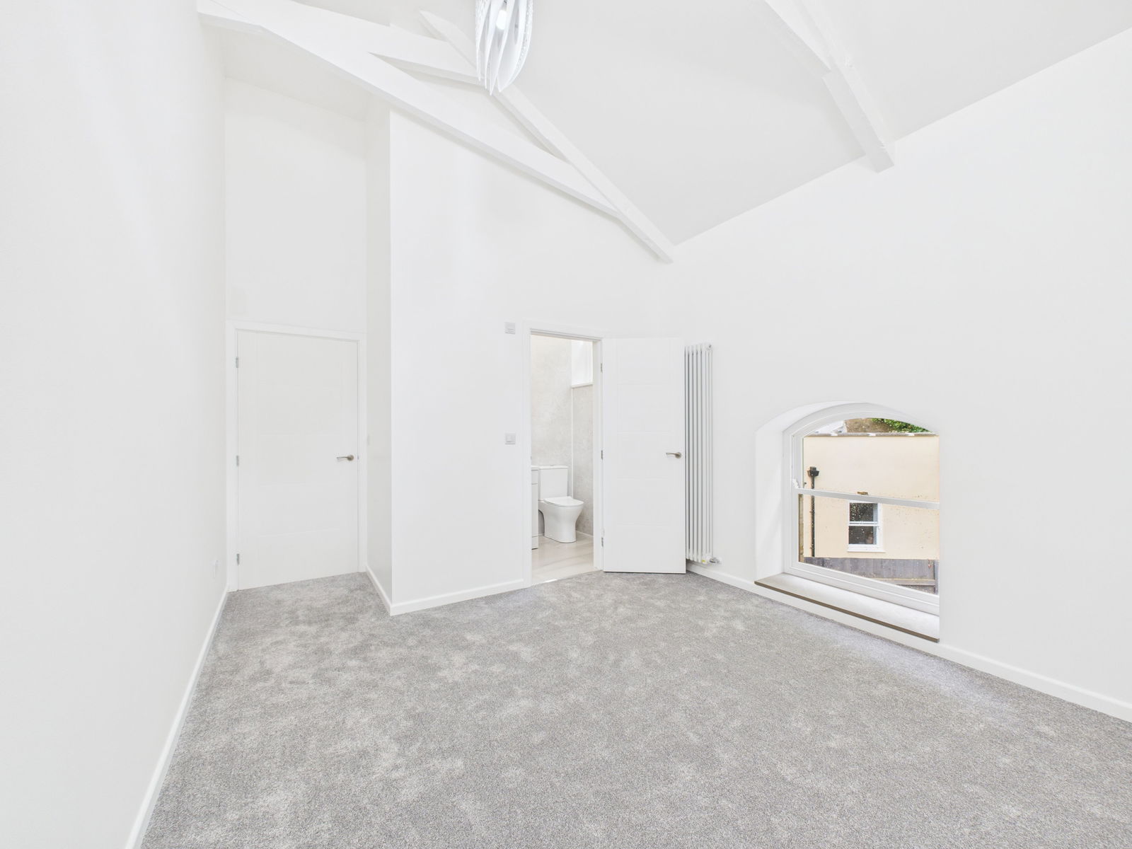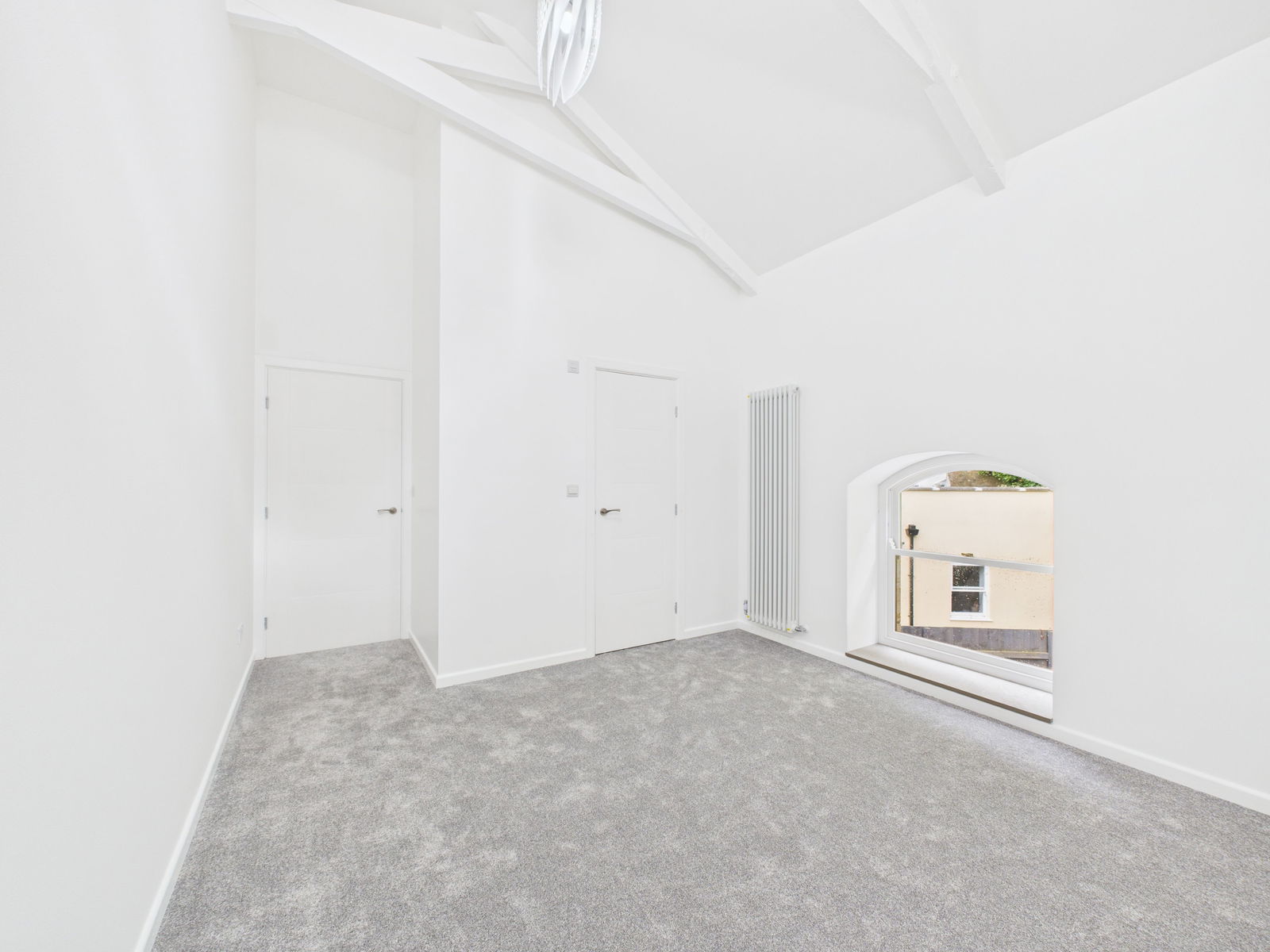 BEDROOM TWO - 5.8m x 2.6m (19'0" x 8'6") Another double room with 3 low level double glazed porthole windows at high level double glazed sash window. Victorian style radiators. There is ample room for a double bed with associated furniture. There are the original beam braces to the vaulted ceiling. Ample power points one with usb points.
