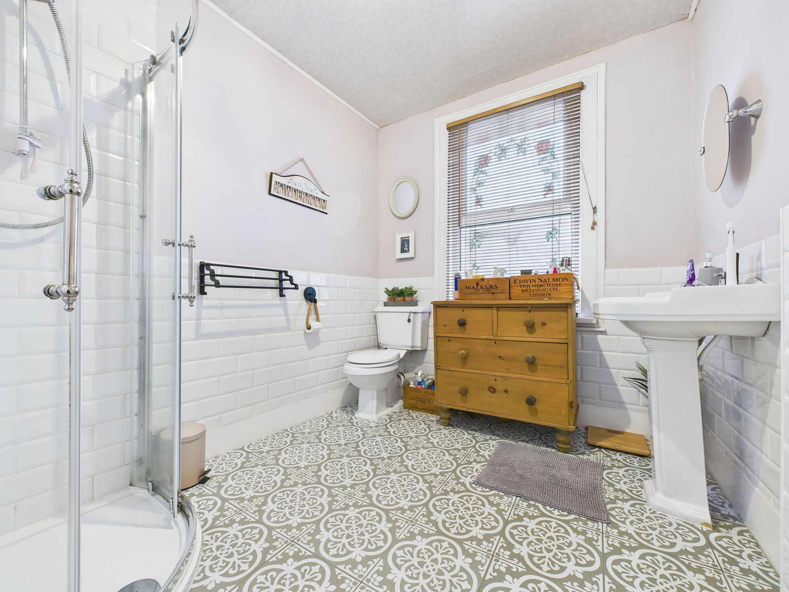 BATHROOM A modern recently refurbished bathroom, comprising of corner shower unit, low level WC and wash hand basin, obscure window to front.