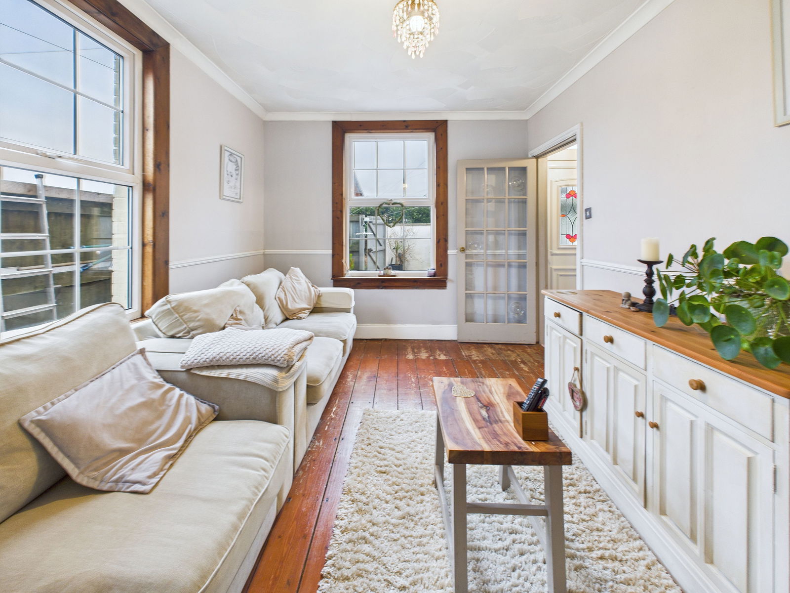 LOUNGE Wooden fire surround, two uPVC windows facing onto front and side. Radiator.