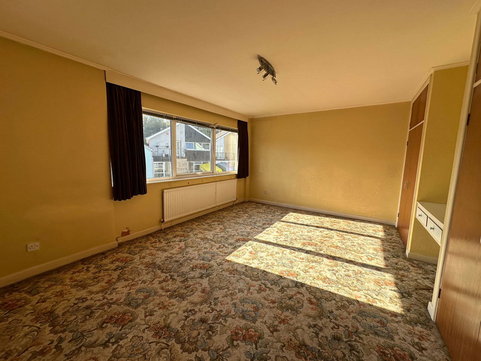A large double bedroom with built in wardrobes, window to front, radiator.