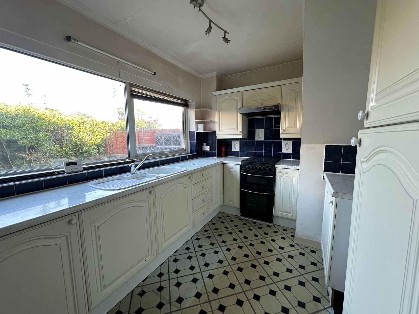 A range of wall and base units with work surfaces over, slot in gas cooker, space for fridge freezer. Double glazed window facing out to the rear garden. Glowworm gas boiler.