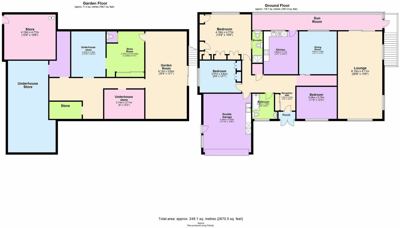 ROOM ONE - 8.1m x 3.9m (26'6" x 12'9") Limited headroom to one side A superb room which could be used for a variety of purposes from storage through to a gym or cinema room. Raised area with fitted store cupboard. Power and lighting. Double glazed patio doors to garden with security roller electric shutter. Access to underneath of property for maintenance/storage. Door to.