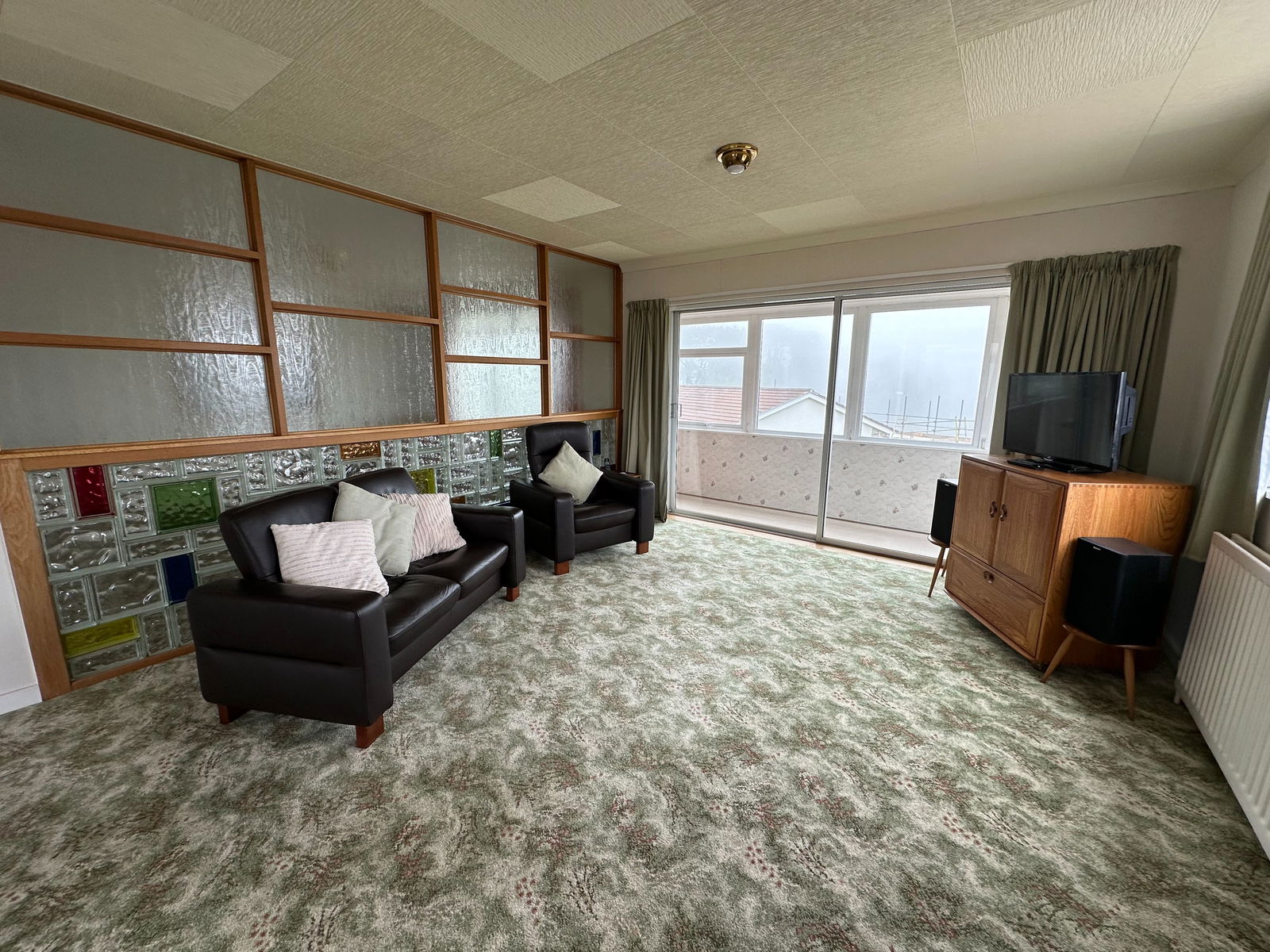 DINING ROOM A generously proportioned room with ample space for a 6–8-seater dining set and space for side boards and book cases, etc. Double-glazed windows enjoying sea views similar to the lounge. Radiator. TV point. Serving hatch to kitchen.