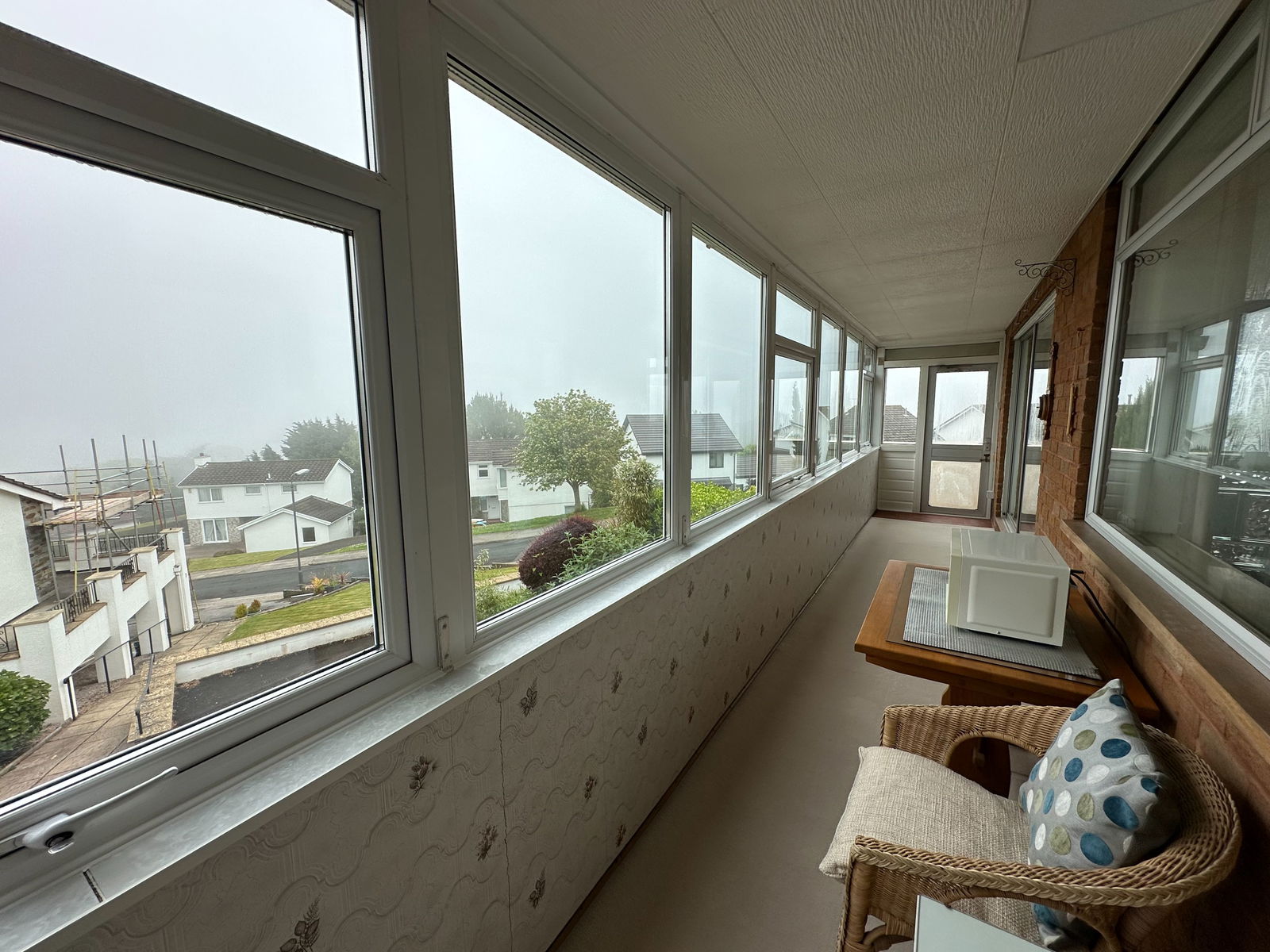 SUN ROOM - 12m x 1.3m (39'4" x 4'3") A long sun room running the full width of the property with double glazed windows and power and lighting. From here the sea views are enjoyable across Wellswood and out to sea to Sidmouth and Exmouth. A great place to sit, relax and enjoy the views. Security roller shutter to outside.