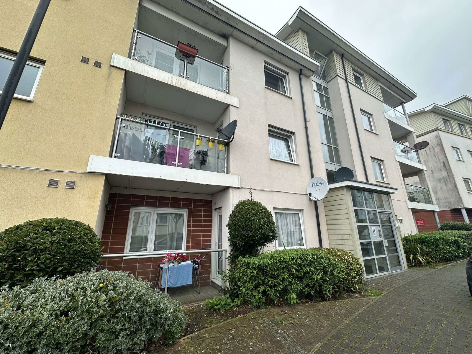FRONT OF PROPERTY Double glazed door to the front with a secure telephone entry system, stairs leading to the apartment front door.