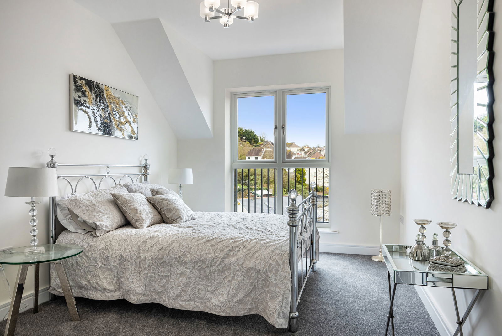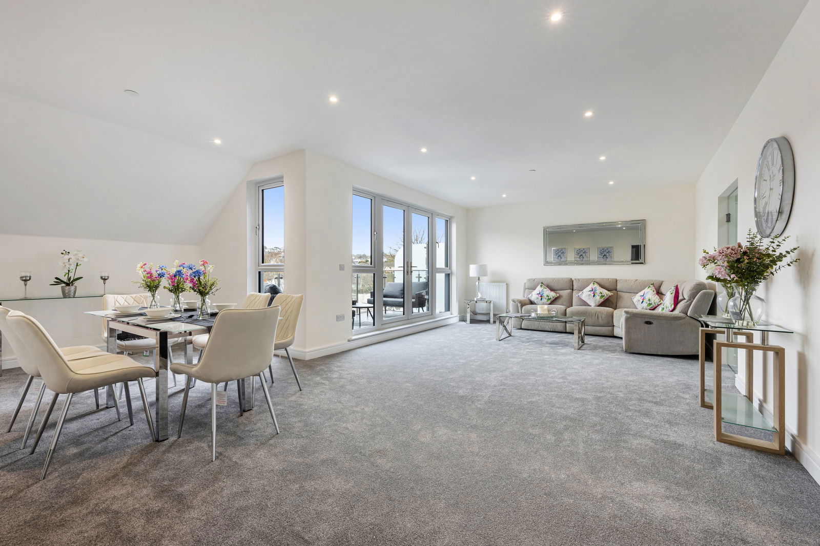 A stunning lounge/diner allowing for a generous lounge area and a dining area that will easily accommodate an 8 seater table. There are French doors leading out to a good sized sun balcony which enjoys an open out look and is perfect for sitting out to relax.