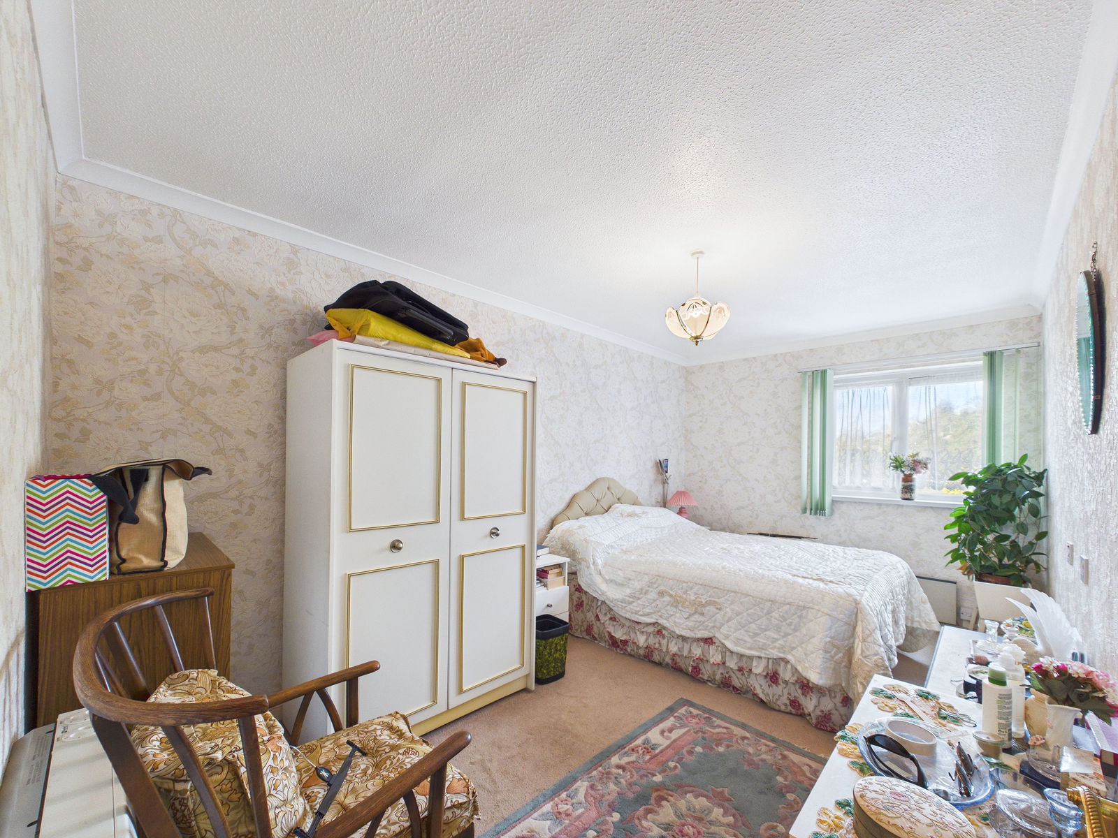 BEDROOM ONE 4.6 m x 2.6 m max A generous double bedroom with double glazed window enjoy outlook across the ground. Electric panel heater. Night storage heater.