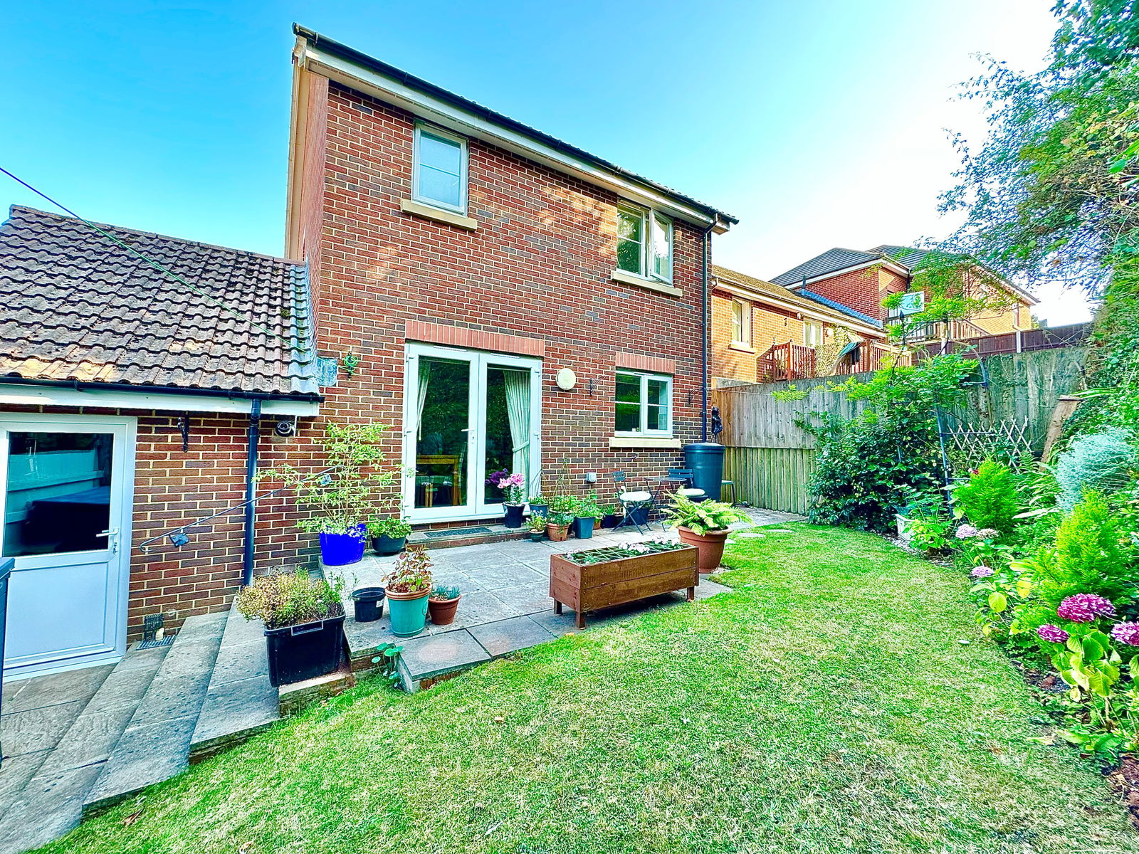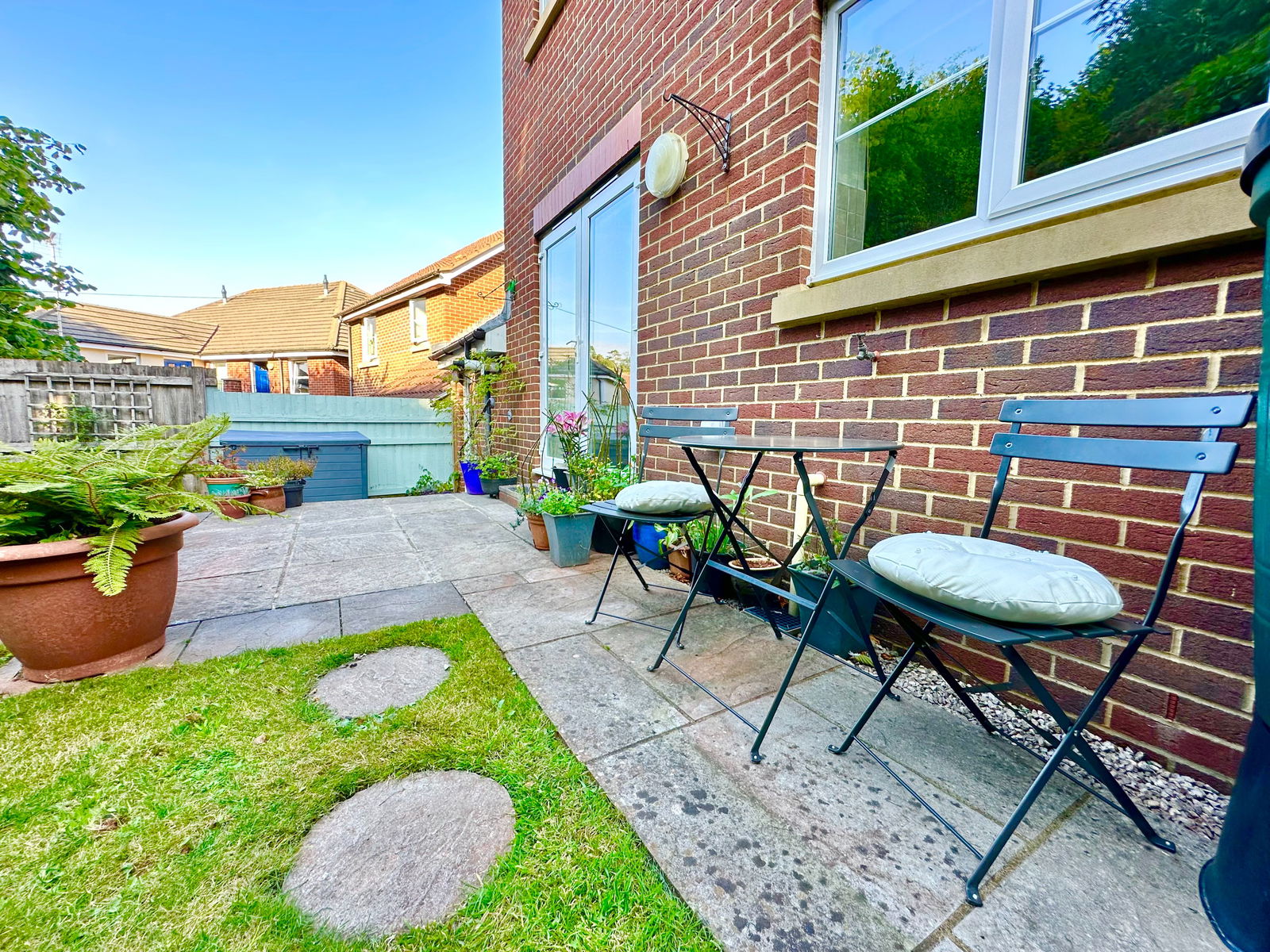 GARDEN The rear garden is pleasantly laid out with a lawn edged with shrub boarders, plus a patio accessed directly from the kitchen/diner. Outside light and power point. Water tap.