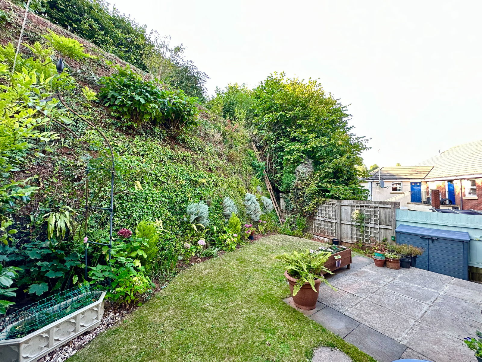 OUTSIDE The front garden is lawn with hedge border.
