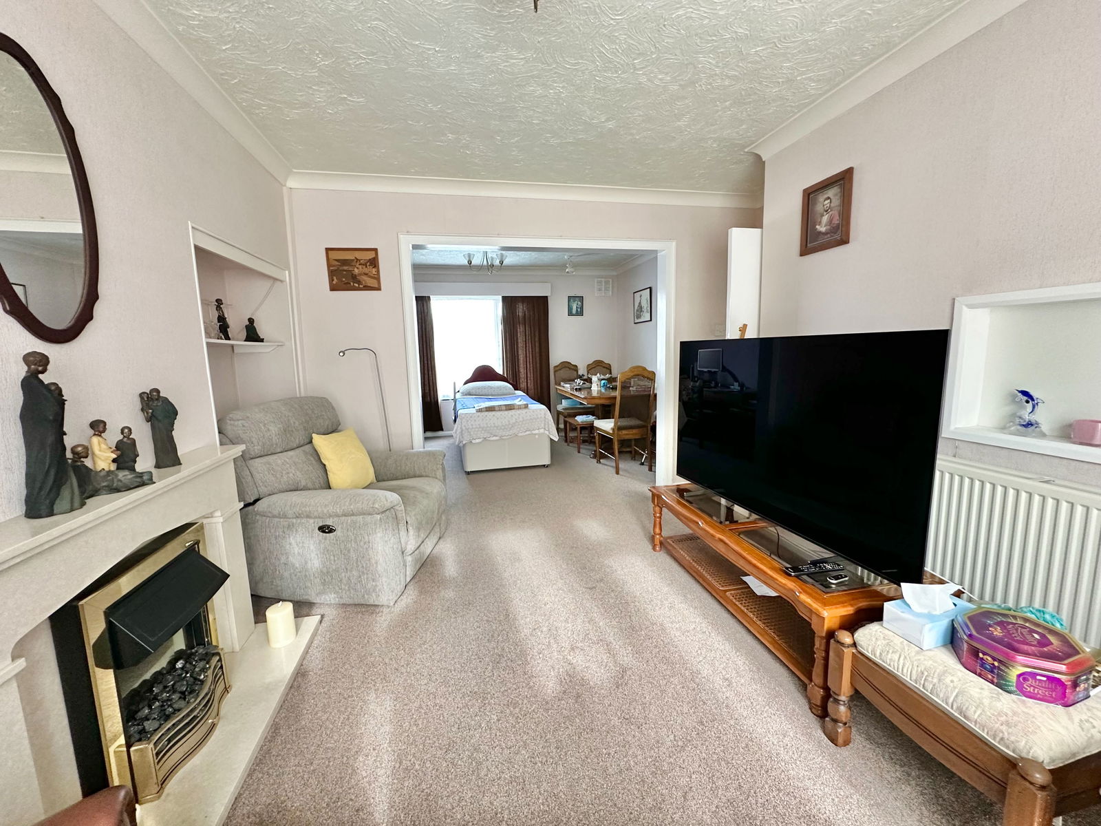 A generous dining room overlooking the front garden with double glazed window and an open outlook. Radiator.