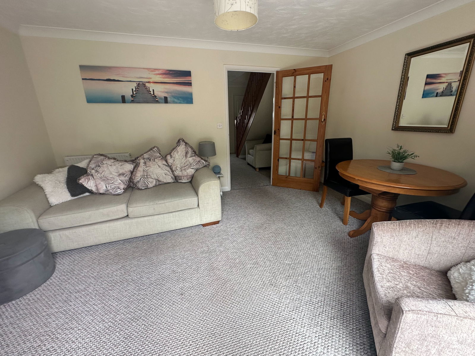LOUNGE - 4.35m x 3.57m max (14'3" x 11'8") A bright and airy lounge with a double glazed, sliding patio door to the rear aspect leading out into the rear garden. Carpeted flooring and ceiling coving. Tv point. Radiator.
