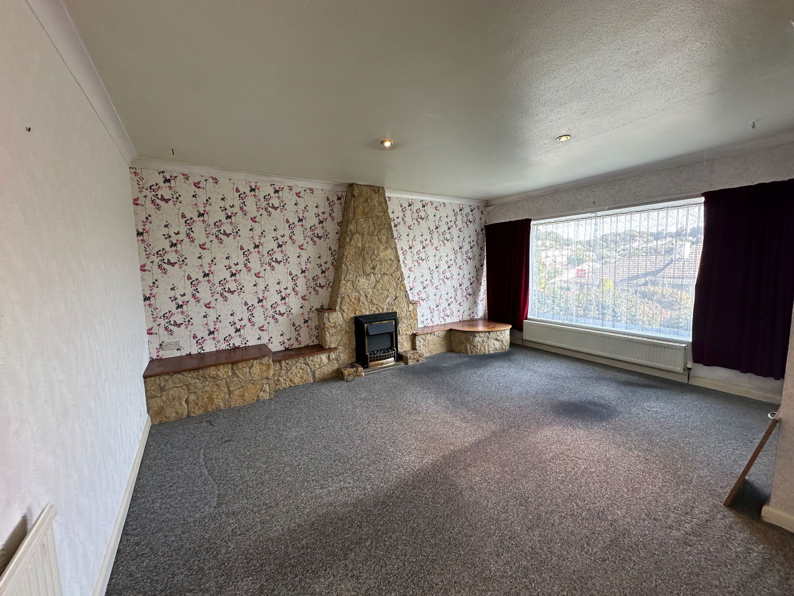 LOUNGE/DINER - 4.86m x 4.55m (15'11" x 14'11") UPVC large window out to front garden, brick crazy paving hearth, inset electric fire, 2 radiators.