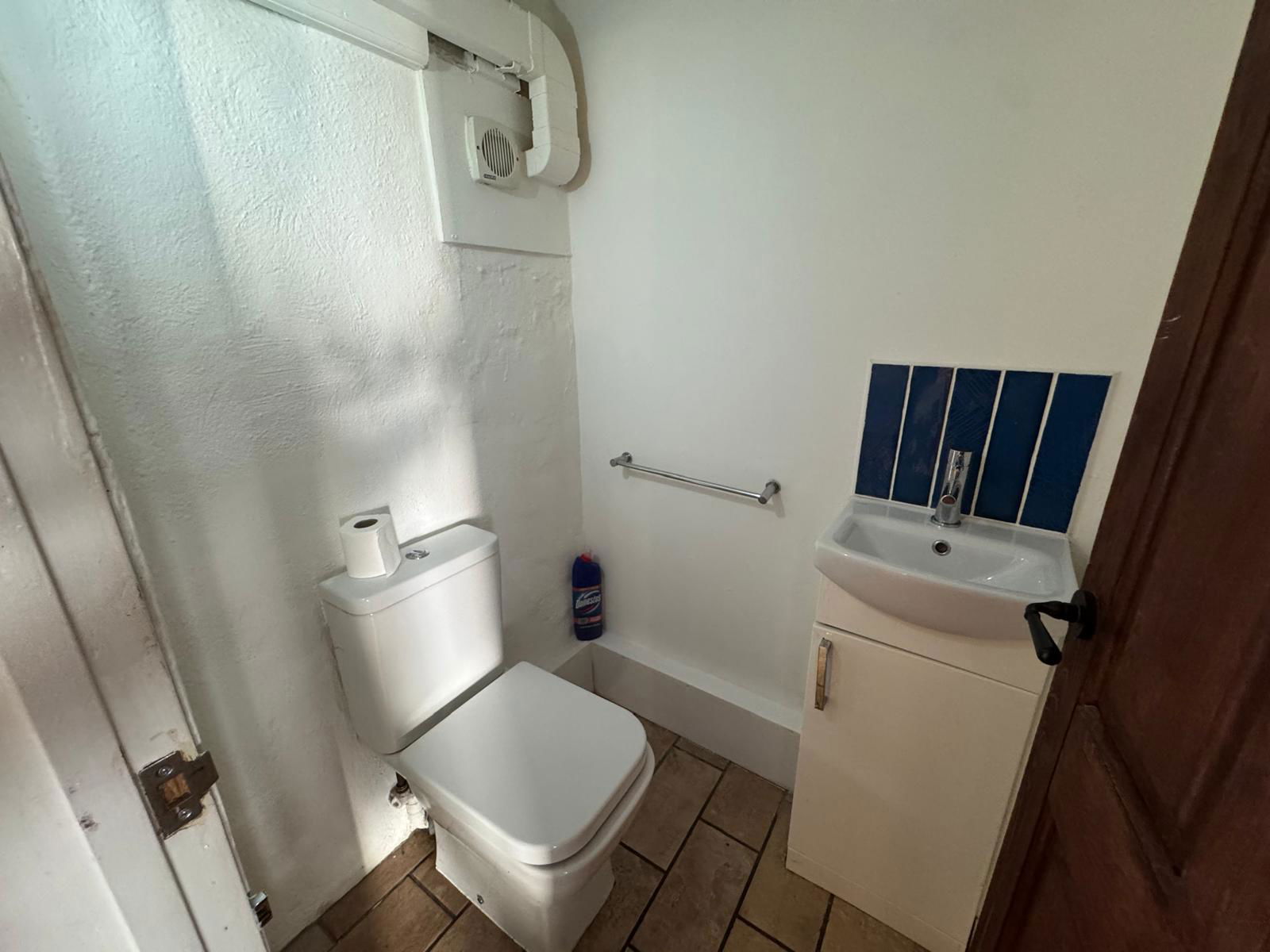 SEPERATE W/C. White close coupled W/C. Wash hand basin.